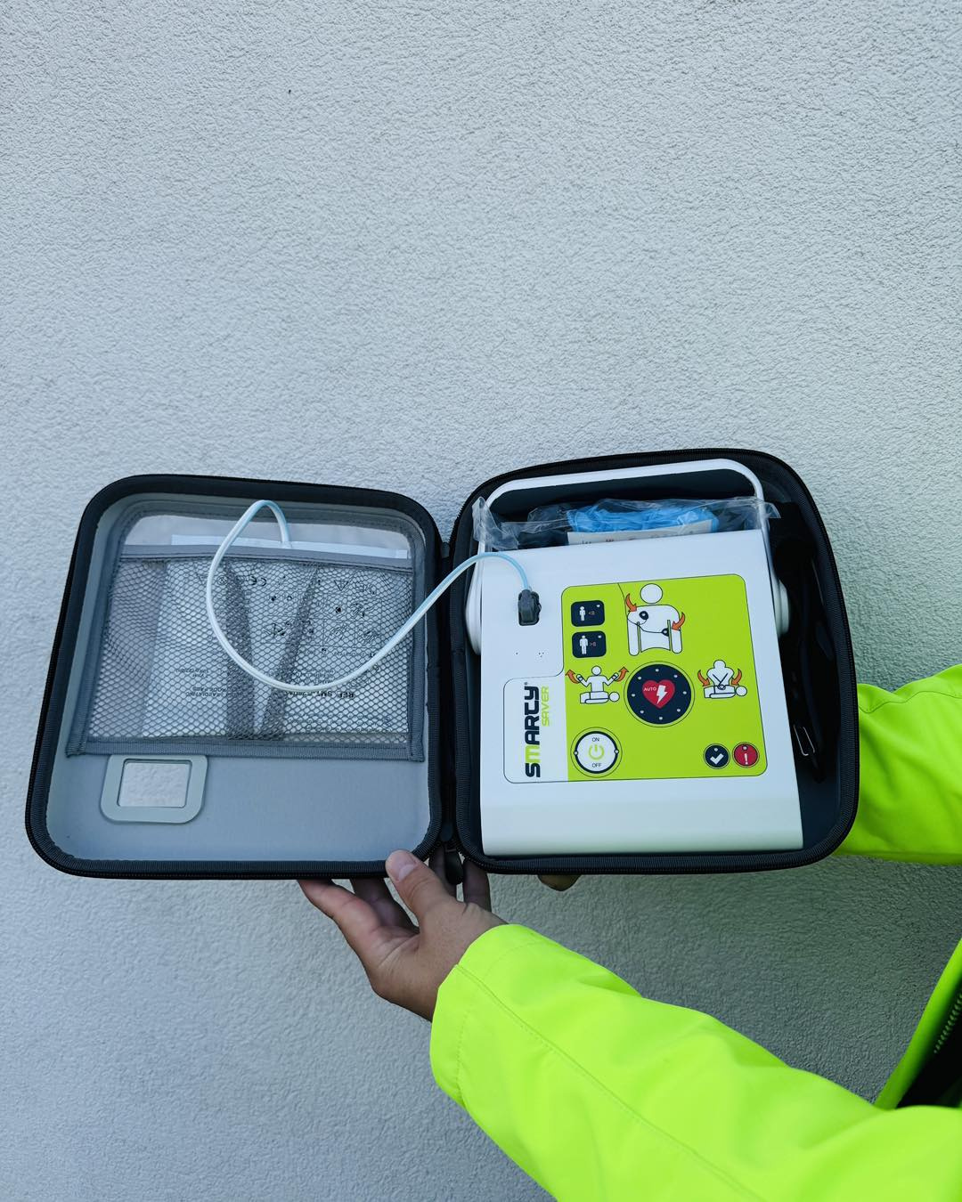 Automatický externý defibrilátor (AED) je prenosný prístroj, ktorý analyzuje srdcový rytmus a dáva užívateľovi pokyny na aplikáciu defibrilačného výboja. Po zapnutí AED vedie užívateľa krokmi oživovacieho procesu pomocou zvukových a vizuálnych pokynov na obnovenie srdcového rytmu.