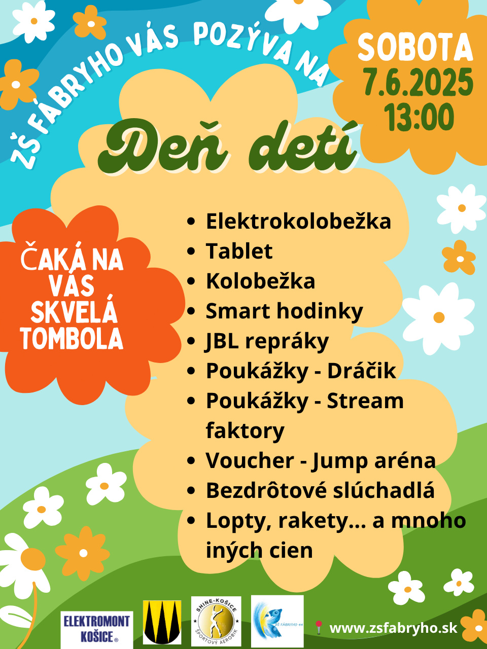 Škola si pre návštevníkov pripravila pestrý program. Na deti čakajú zábavné súťaže, tvorivé dielne, maľovanie na tvár aj obľúbený skákací hrad. Chýbať nebudú ani sladké dobroty a občerstvenie, ktoré potešia všetkých, ktorí prídu stráviť popoludnie v príjemnej atmosfére. Zaujímavosťou je, že každé dieťa, ktoré prejde pripravené stanoviská, dostane malý darček. A to ešte nie je všetko – pripravená je aj bohatá tombola, v ktorej bude možné vyhrať zaujímavé ceny.