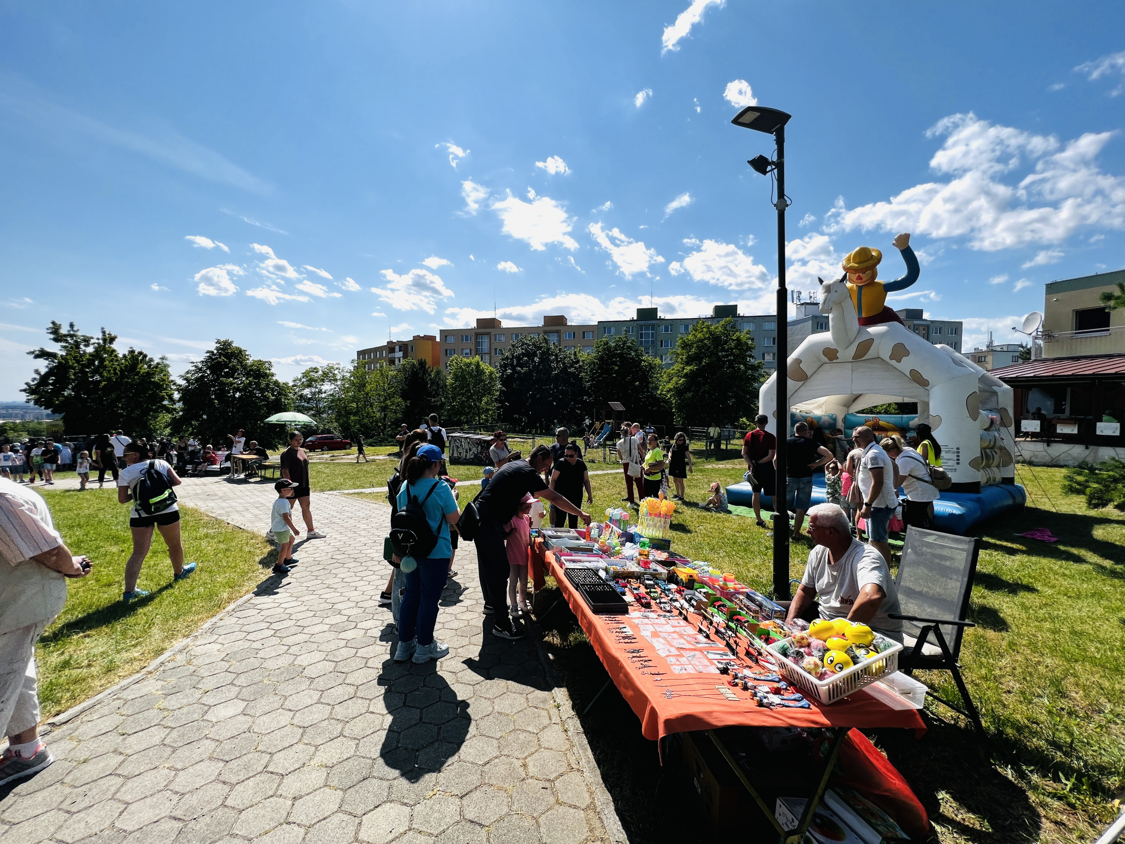 Počas slnečnej nedele sa v parku pri fontáne konalo podujatie k Medzinárodnému dňu detí. Na svoje si tak prišli všetky vekové kategórie od detí, rodičov až po starých rodičov.